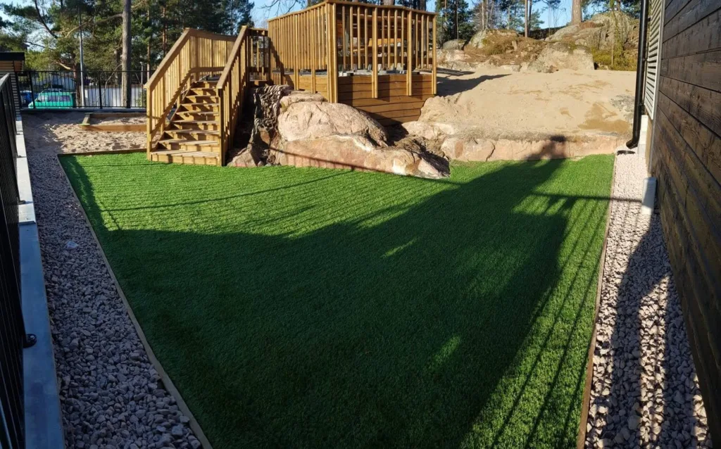 Kuvittele piha, joka näyttää aina huolitellulta ja vihreältä, riippumatta vuodenajasta tai sääolosuhteista. Tekonurmi pitää pihasi siistinä ilman jatkuvaa huolenpitoa. Ei enää ruskeita laikkuja, rikkaruohoja tai epätasaista kasvua. Tekonurmi on kuin juuri leikattu nurmikko, joka säilyy kauniina ympäri vuoden. Se on täydellinen ratkaisu heille, jotka arvostavat esteettisesti miellyttävää pihaa mutta eivät halua käyttää aikaa tai vaivaa sen jatkuvaan hoitamiseen. Tekonurmi varmistaa, että pihasi on aina esittelykunnossa – aivan kuin se olisi juuri saanut ammattilaisen kosketuksen.